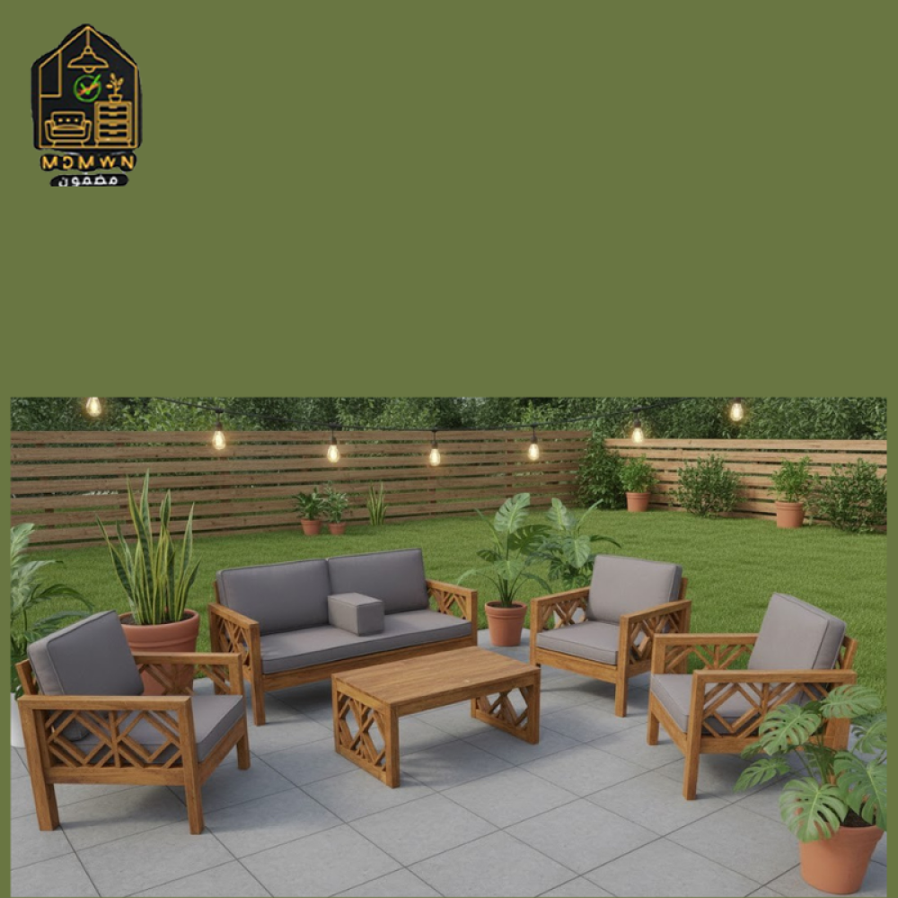 - مؤلف من كنبة ثلاثية وكنبة ثنائية وكرسيين وطاولة