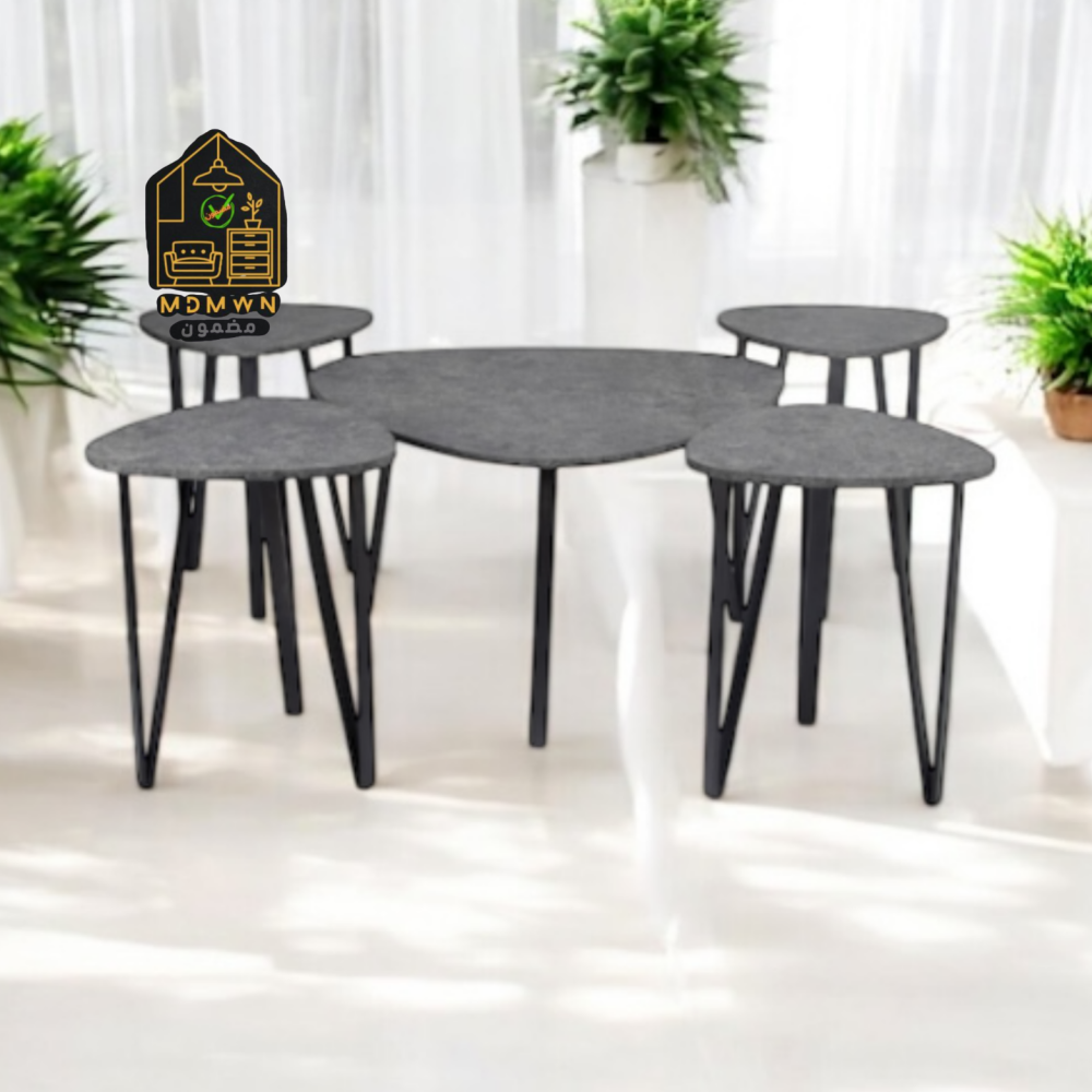يشمل الطقم 5 قطع ، يمكن استخدامها كطاولات قهوة، طاولات جانبية، أو حتى للعرض، مما يتيح لك تنسيقها حسب احتياجاتك