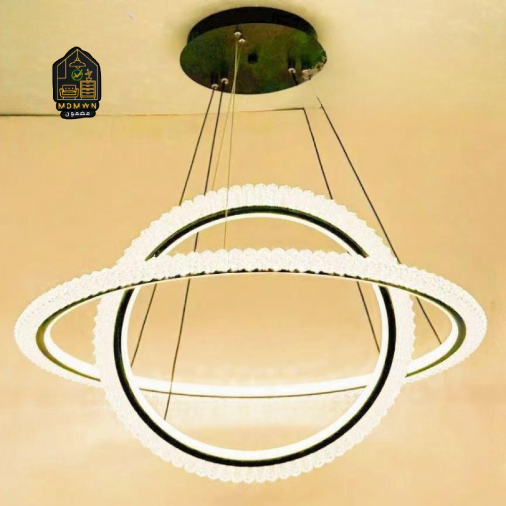 ثريا حلقات المجرة، تصميمها كأنك جالس تحت الكواكب! حلقات متداخلة تعطي إضاءة رايقة وجو خيالي. الكريستال المحيط بالحلقات يلمع مع كل زاوية ويخلي المكان يشع فخامة. تناسب صالاتك، مجلسك وحتى غرفة الطعام 👌. وسعرها؟ 145 ريال بس… لقطة ما تتفوت!
