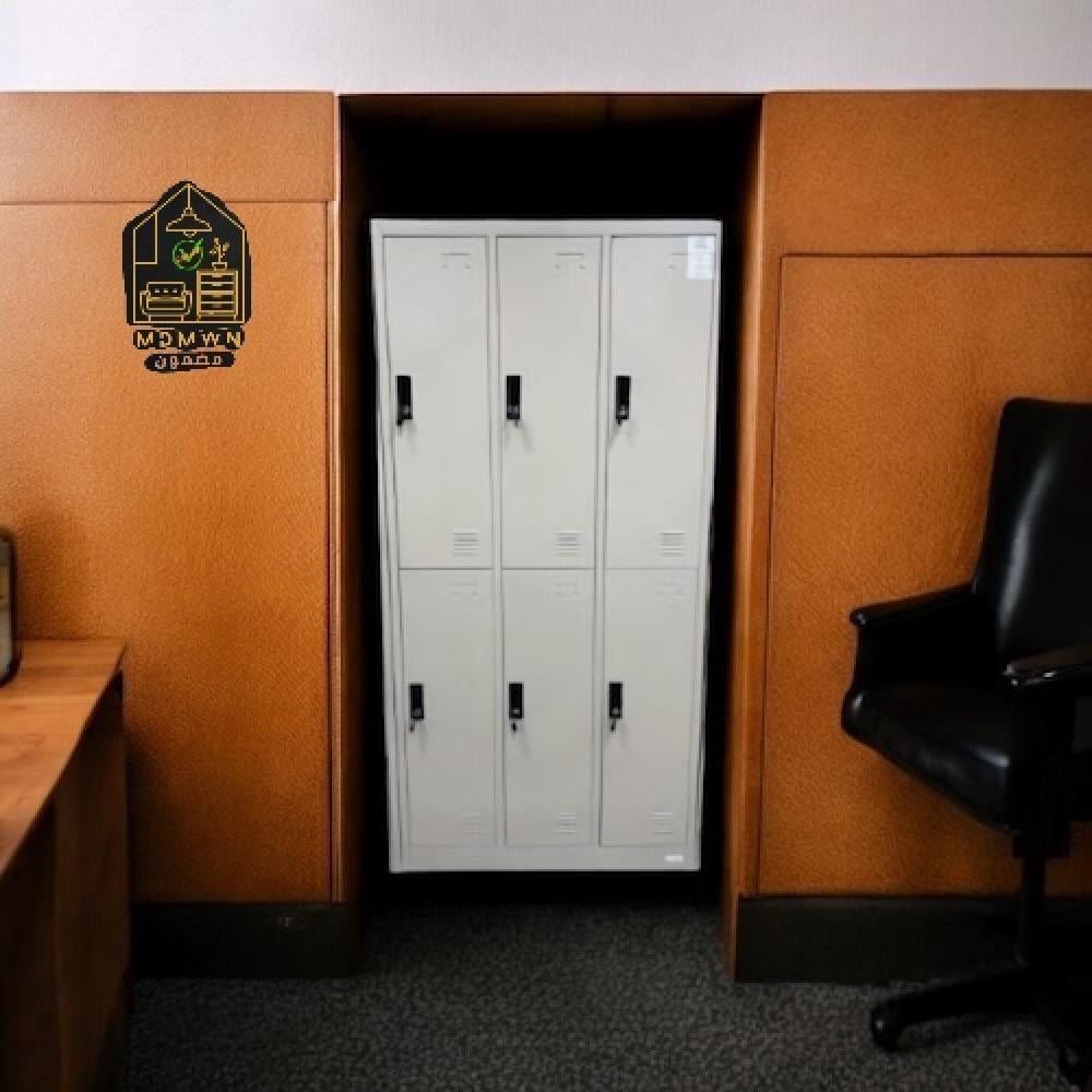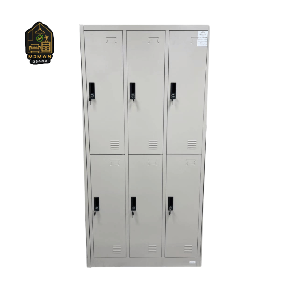 خزانة لوكر حديدية مكونة من 6 أبواب فردية مثالية لتأمين الأغراض الشخصية في المدارس، والنوادي، والمكاتب، والمصانع. مصنوعة من الحديد القوي المطلي الكتروستاتيك، وتتميز بتصميم رأسي يوفر المساحة، مع فتحات تهوية في كل باب لسلامة المحتويات.