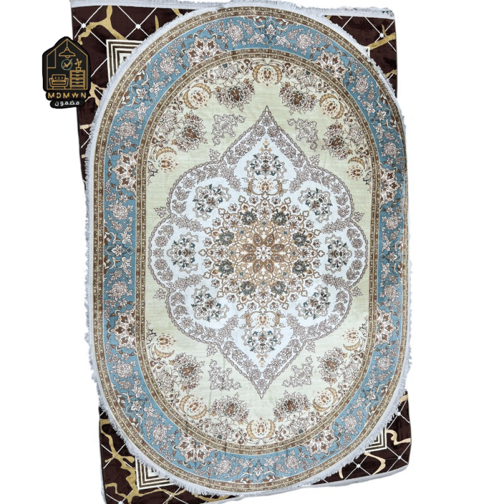 جادة فاخر بتصميم منقوش بألوان دافئة ومبهجة تتناسب مع كافة أنواع الديكورات. تتميز بتفاصيل دقيقة وألوان زاهية تجمع بين الأزرق الفاتح والبني، مما يضفي لمسة من الفخامة والراحة على أي غرفة أو صالة. مثالية لإضافة لمسة من الأناقة لمنازل أو مكاتب حديثة. 🌟🪑✨