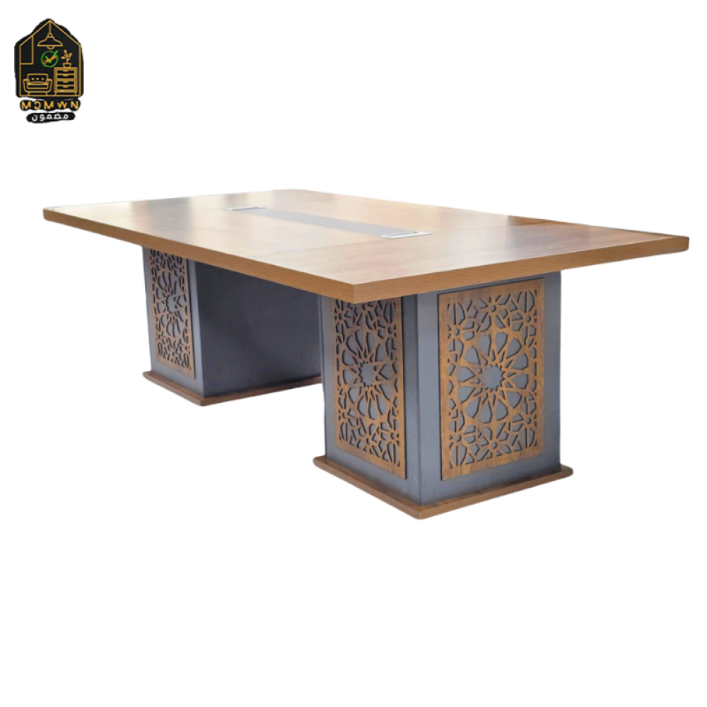 - طاولة اجتماعات ضخمة بتصميم فريد، تجمع بين عراقة النقوش الشرقية وقوة الخشب، وتضيف لمسة من الذوق الرفيع لمكتبك 🤩.