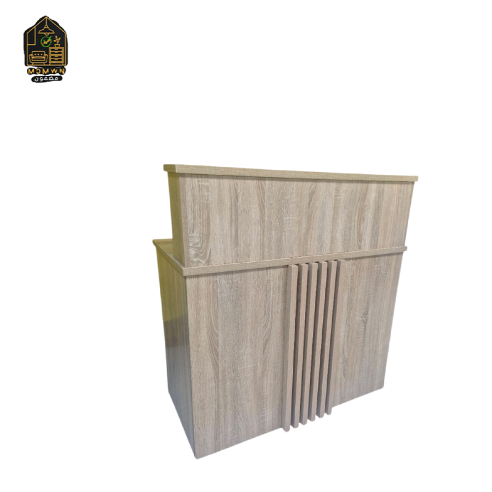 طاولة استقبال بتصميم عصري، واجهتها بشرائح عمودية تعطيها لمسة فنية فاخرة 🎨
