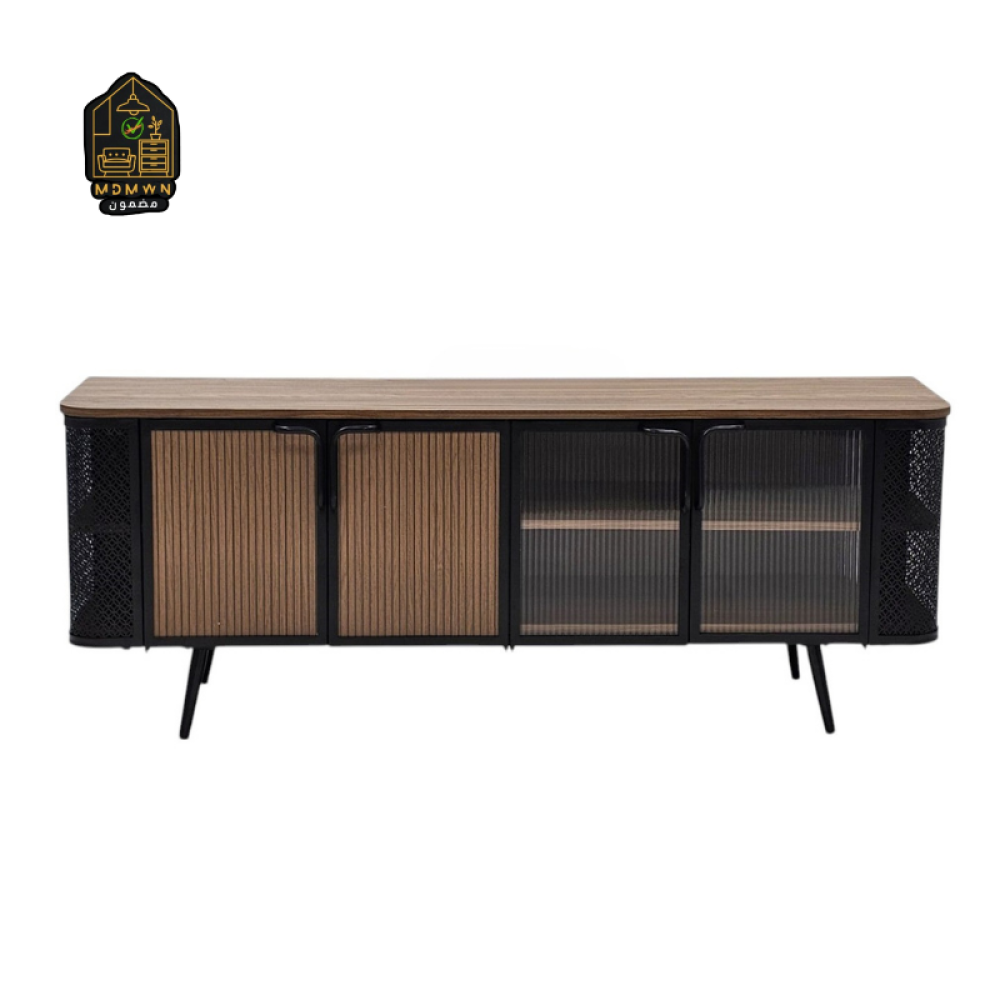 تصميم أنيق يجمع بين الخشب الطبيعي والزجاج الأسود بإطار حديدي قوي💪