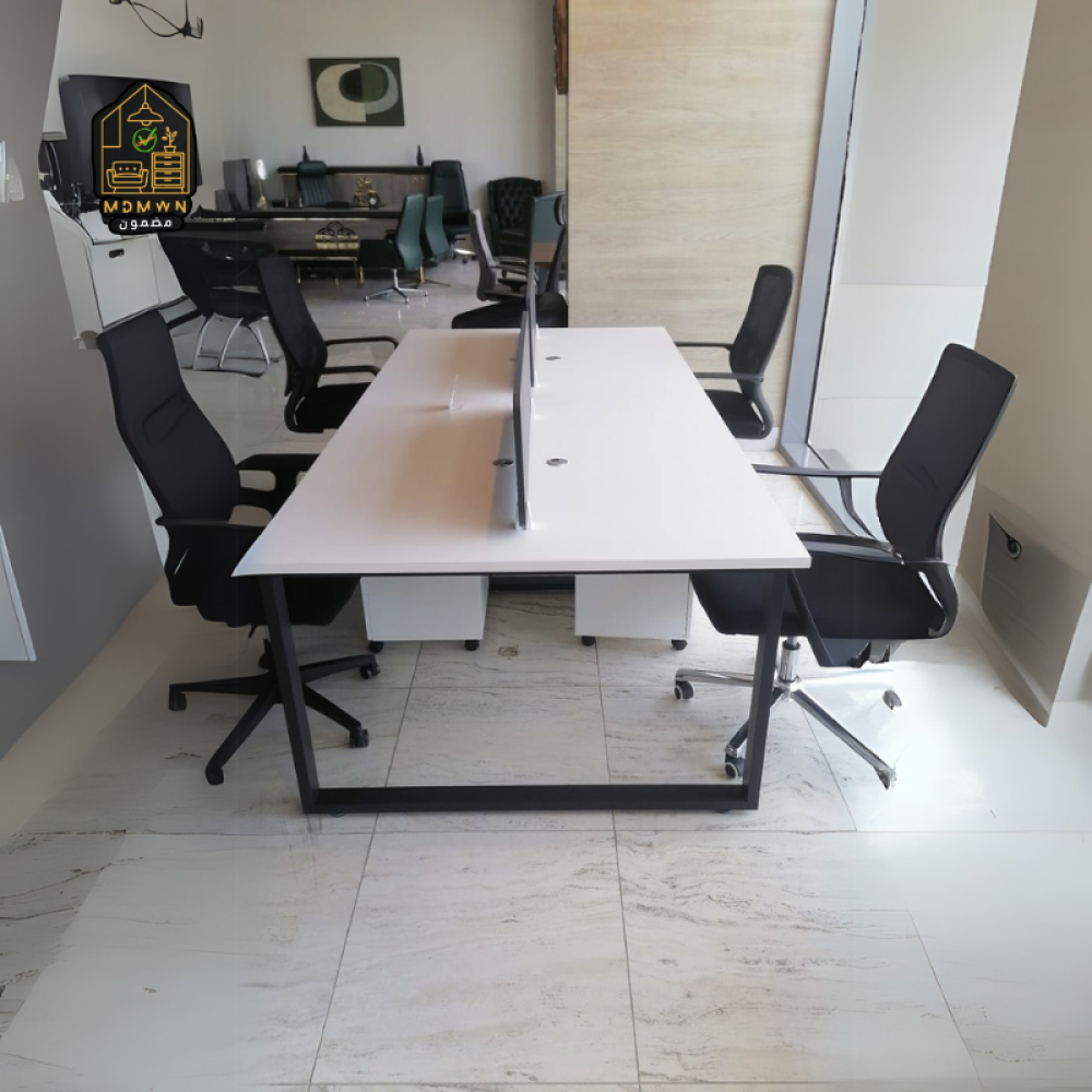تنظم مساحة عملك مع طاولة المكتب العملية المزودة ببرتيشن رباعي، حيث توفر خصوصية لكل فرد مع مساحة عمل مريحة. تصميم عصري ومناسب للمكاتب الحديثة. 🖥️📚