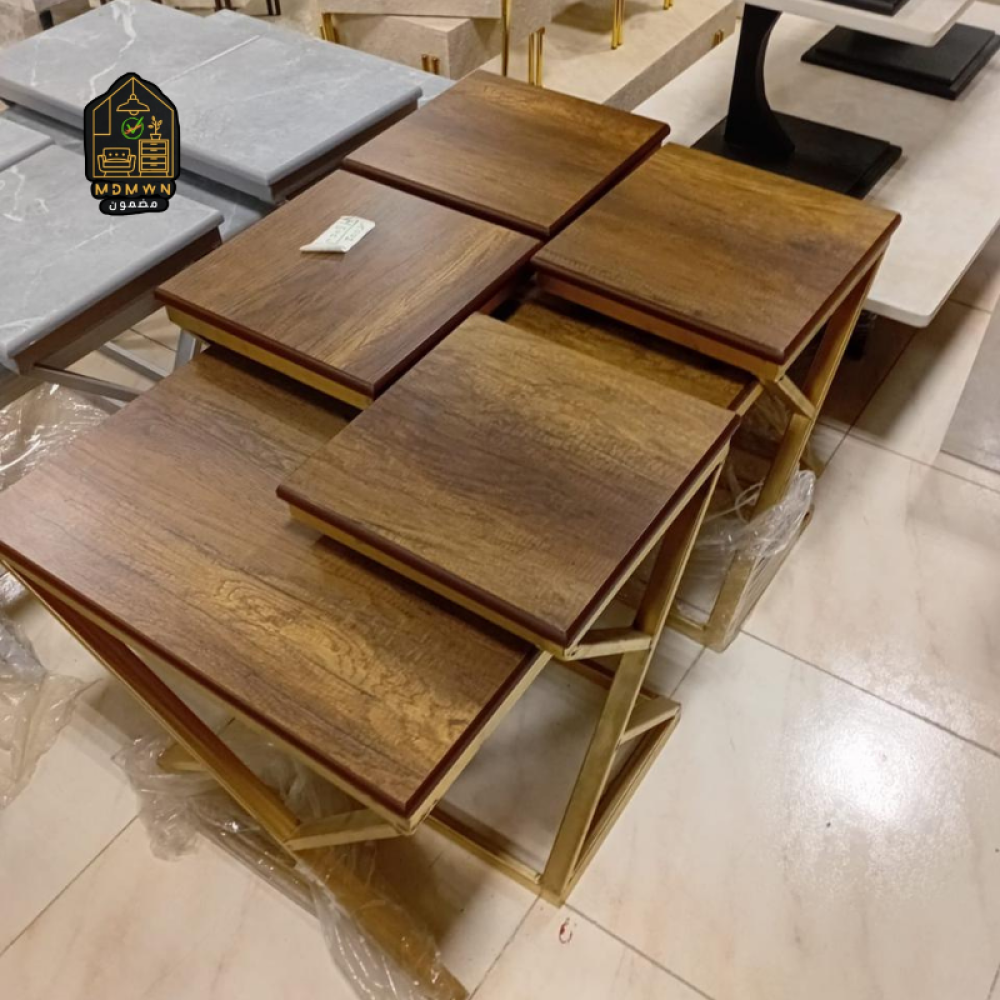 عيش فخامة الخشب مع طقم الطاولات بتفصیل من خشب MDF يمنح المكان أصالة وأناقة راقية في كل زاوية! السطح بتصميم يحاكي بديل الرخام بخشب طبيعي، يضيف دفء وجمال للمجلس أو المكتب. الأرجل المعدنية بتفصيل بديل الحجر تعطيك ثبات لا يعلى عليه وأناقة عصرية تفتح النفس. كل جملة فيها خشب MDF، وبديل الرخام، وبديل الحجر… يعني قوة الجذور وجمال الحجر بلمسة حديثة. الطقم المربع عملي ويناسب كل الديكورات، يخلي المكان أرقى وأهدى!