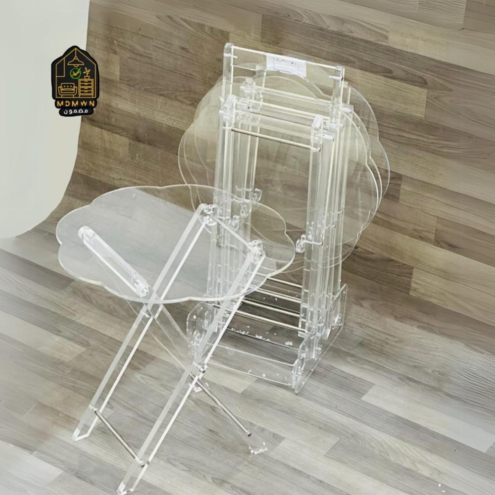 🛋️ عملي وسهل الطي، مع قاعدة تخزين شفافة تحافظ على ترتيب الطاولات بأناقة.