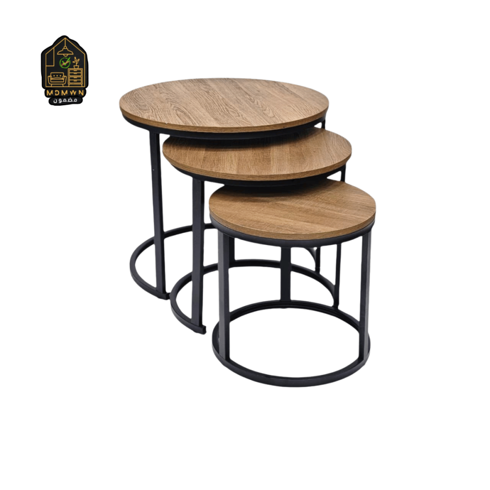 طقم "الدائرية المتداخلة" بيضيف لمسة عصرية عملية لأي ركن عندك 👌! ثلاث طاولات دائرية بأحجام مختلفة تتداخل بسهولة لتوفير المساحة وتعطيك شكل مرتب وراقي 🔥. خامة السطح سواء خشب أو رخام صناعي تعطي فخامة فورية، وقاعدة الحديد المتينة تضمن لك ثبات وجودة تدوم ✨. مثالية للقعدة، لضيافة القهوة، أو حتى للزوايا الجمالية بالبيت أو المكتب 🌟.