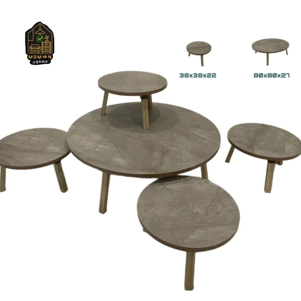 طقم دائري أنيق بسطح رخامي رمادي يعطي لمسة فخامة لمجالس بيتك وضيَافتك ✨