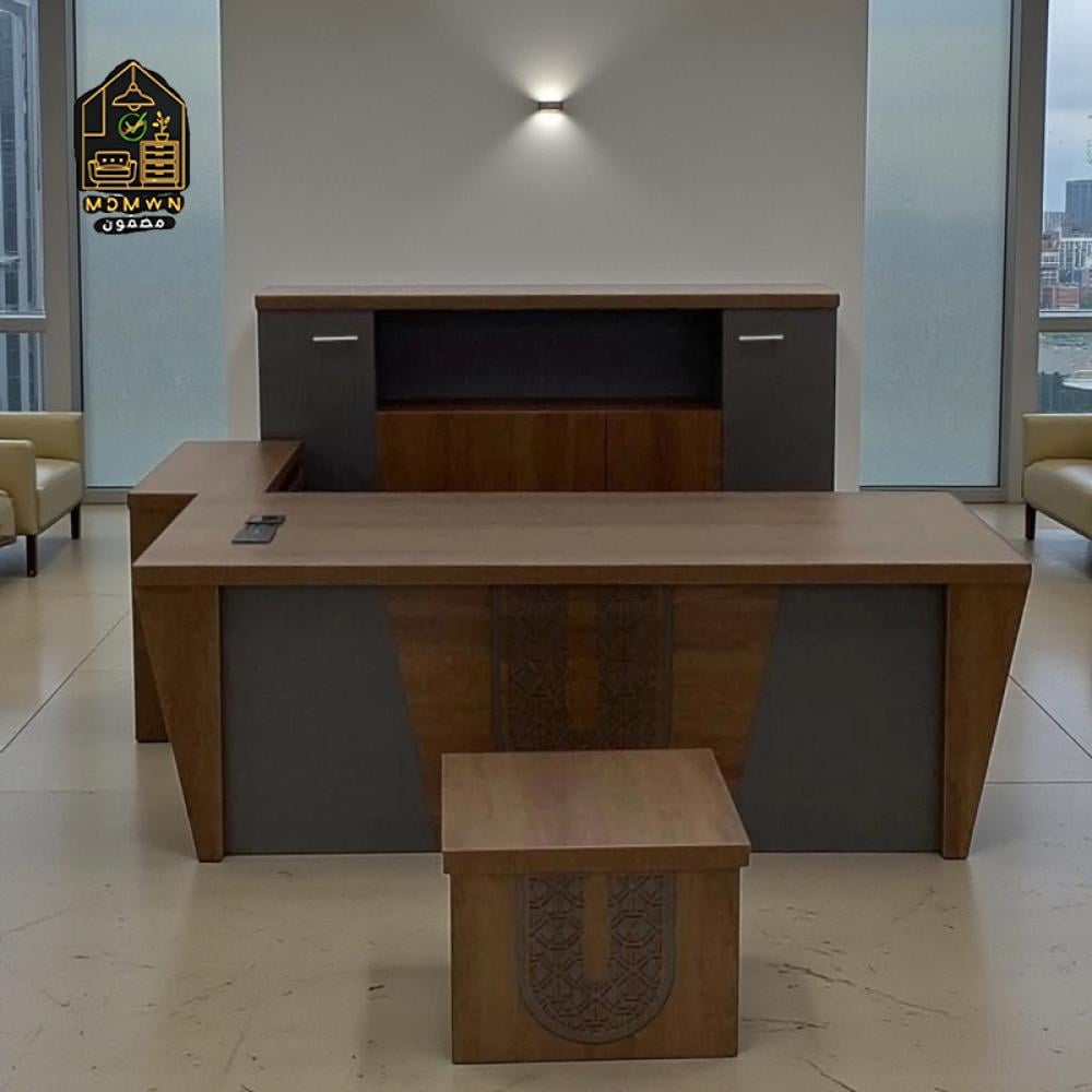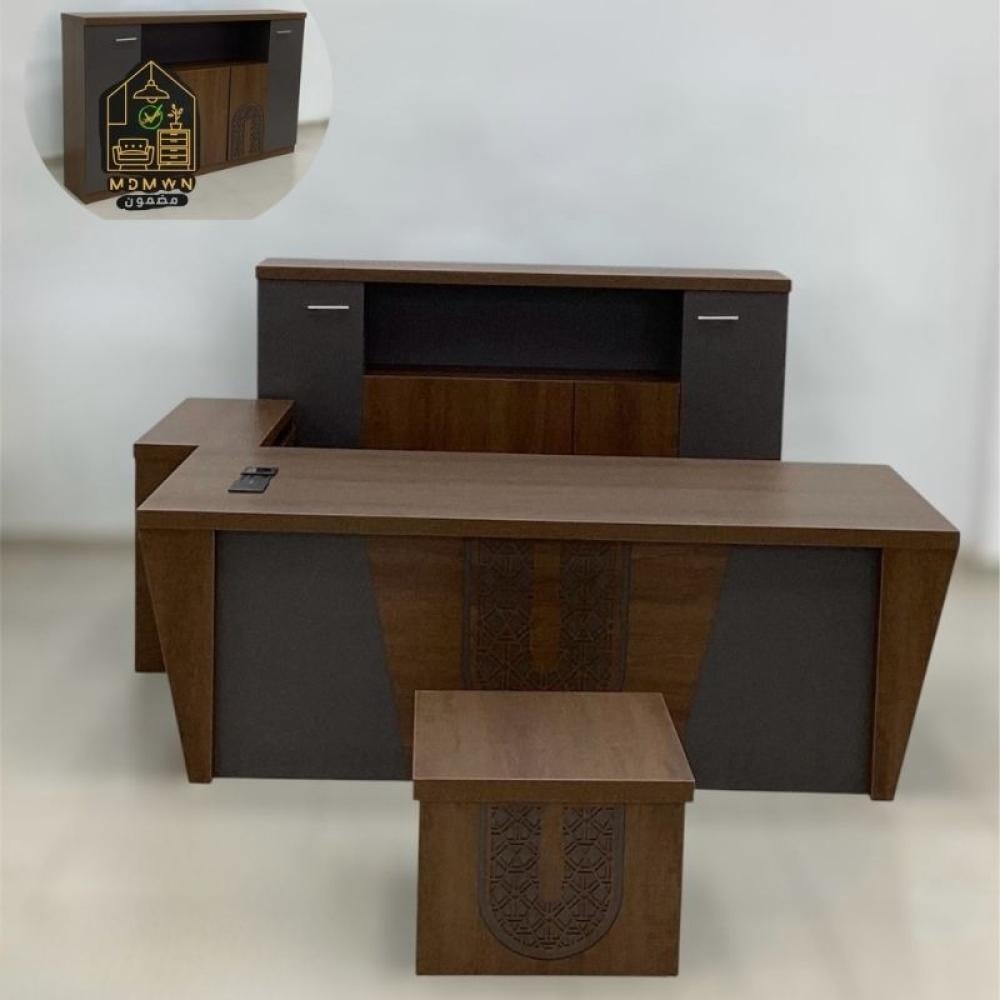 • التصميم يجمع بين الأناقة العصرية واللمسة التراثية المميزة، حيث يبرز في واجهة المكتب نقوش إسلامية (أو هندسية) مُتقنة ومحفورة على الخشب، تضيف طابعًا ملكيًا وراقيًا وتجعل مكتبك قطعة فنية بحد ذاتها. 🖼️✨