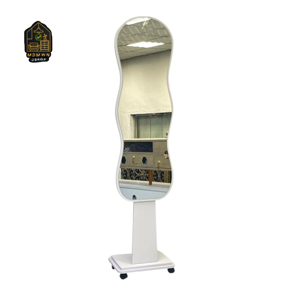 تبي مراية تطلعك من إطار الروتين؟ 😍 هذي المراية بتصميم الموجة تعطي غرفتك لمسة جمالية فريدة! قاعدة متحركة بعجلات تخلي نقلها سهل، وتعطيك منظر جذاب في كل زاوية 🚪✨.