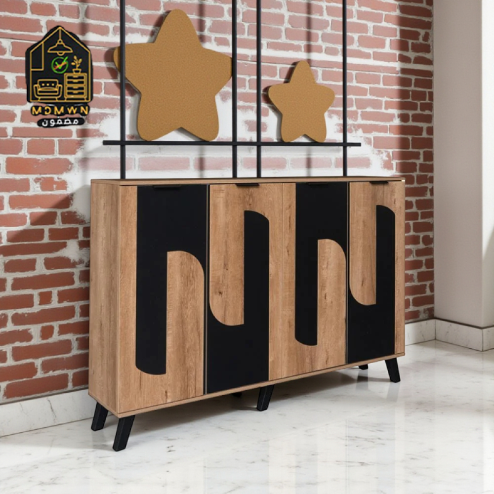 خزانة أحذية بطابع عصري ولمسة خشبية تجذب الأنظار 👞✨ تصميم الأبواب بنمط هندسي متقاطع يضيف لمسة فنية لأي مدخل 🚪🧩، قاعدة مرتفعة تسهّل التنظيف وتضفي خفة وأناقة 👌🧼، وتناسق الألوان يعطيك توازن بين الكلاسيك والمودرن 🎨🏠، عملية ومثالية لترتيب الأحذية بكل سلاسة وسرعة! ⚡👟