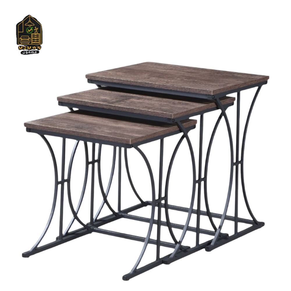 طاولات خدمة خشبية ٣ قطع بأرجل منحنية بتصميم صناعي أنيق