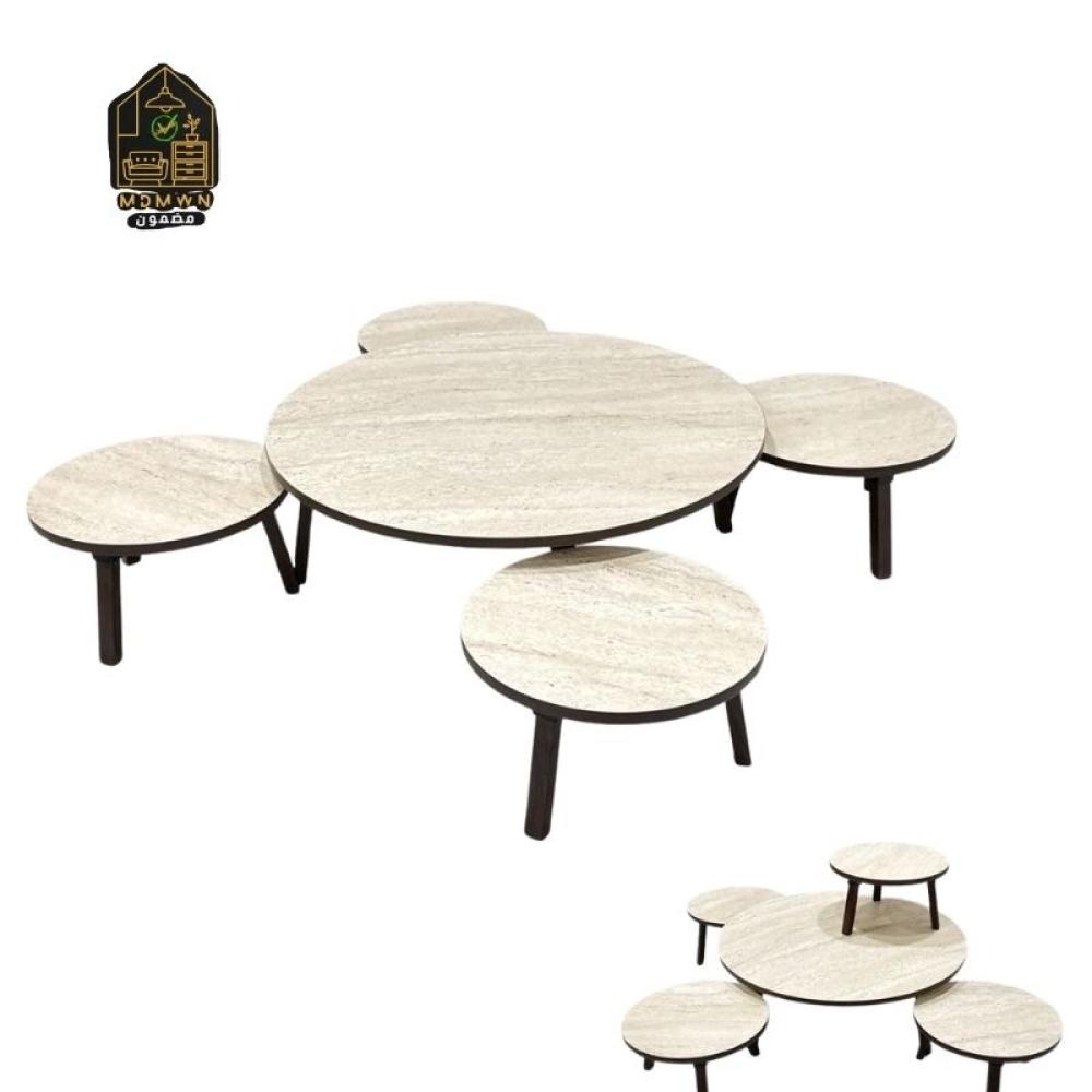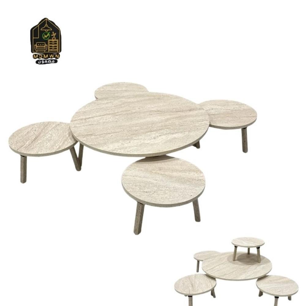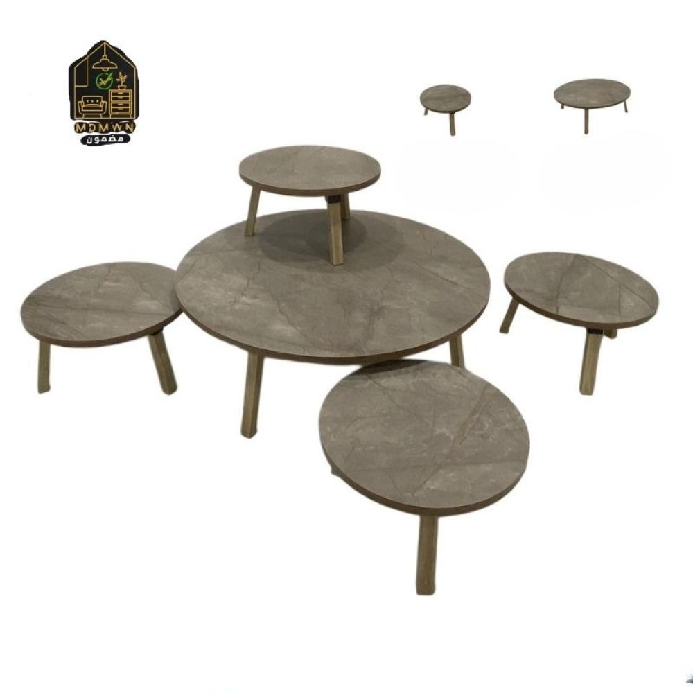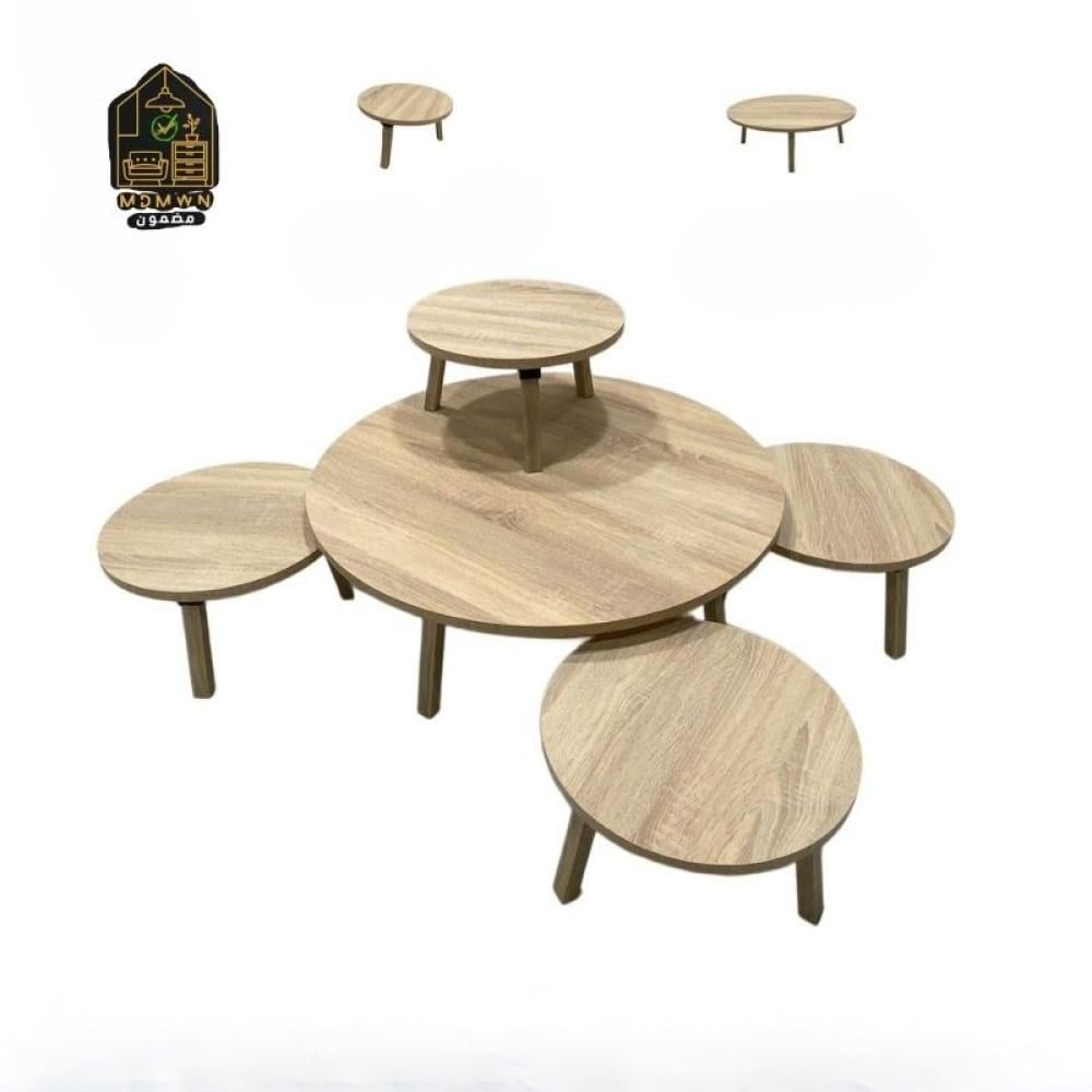 طقم مميز من الطاولات الخشبية التي تتميز بتصميم عصري وفاخر، مناسب لإضافة لمسة أنيقة إلى أي مساحة. يتكون الطقم من عدة طاولات بأحجام مختلفة مع أرجل خشبية تضفي عليه مظهرًا عصريًا وتقليديًا في الوقت ذاته.