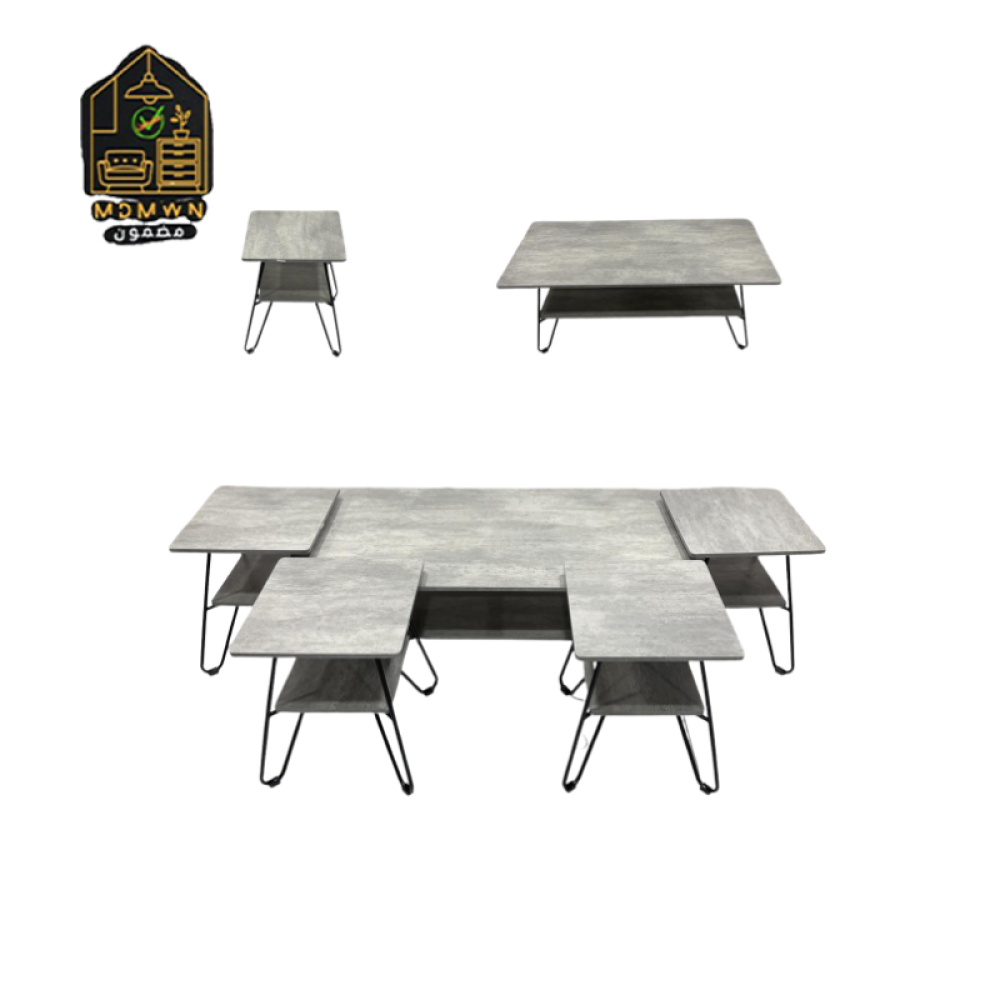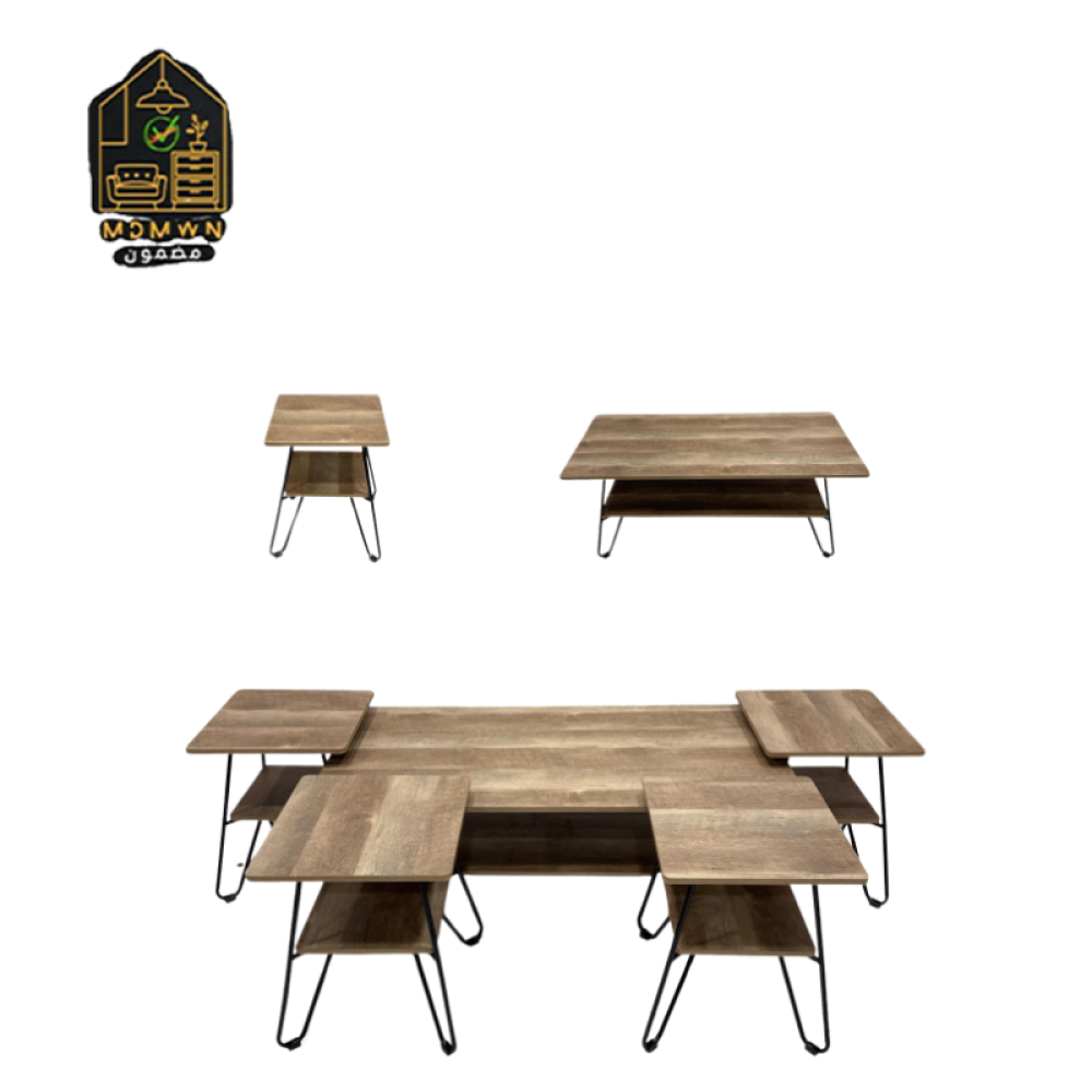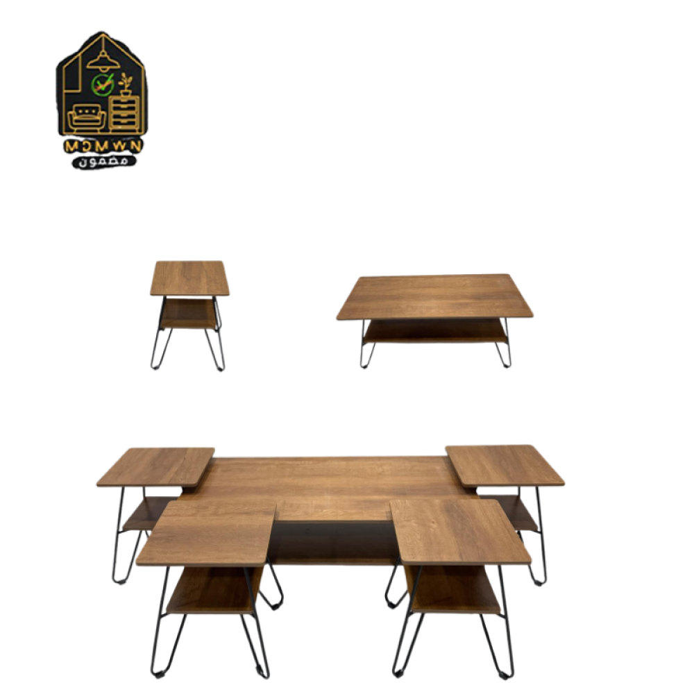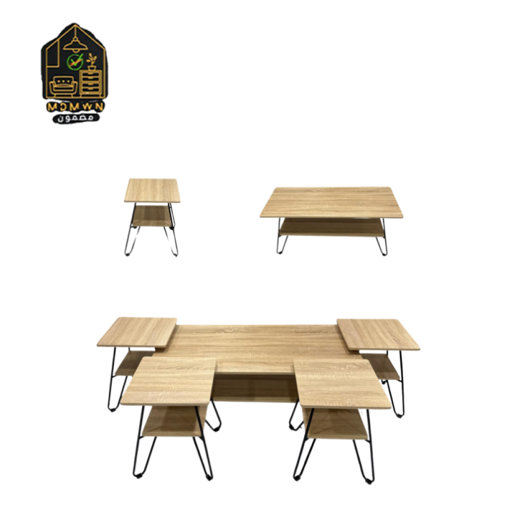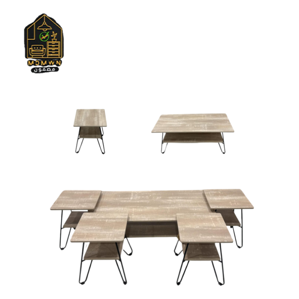 طقم طاولات أنيق بتصميم يناسب جميع الأذواق. مصنوع من خامات عالية الجودة تجمع بين المتانة والجمال. يضم الطقم 4 طاولات وطاولة مركزية، مثالي للجلسات العائلية والصداقة. تصميم عصري يضيف لمسة فخامة لأي مكان تحطه فيه. سهل التنظيف والترتيب، وخفيف الحركة على الأرضية.