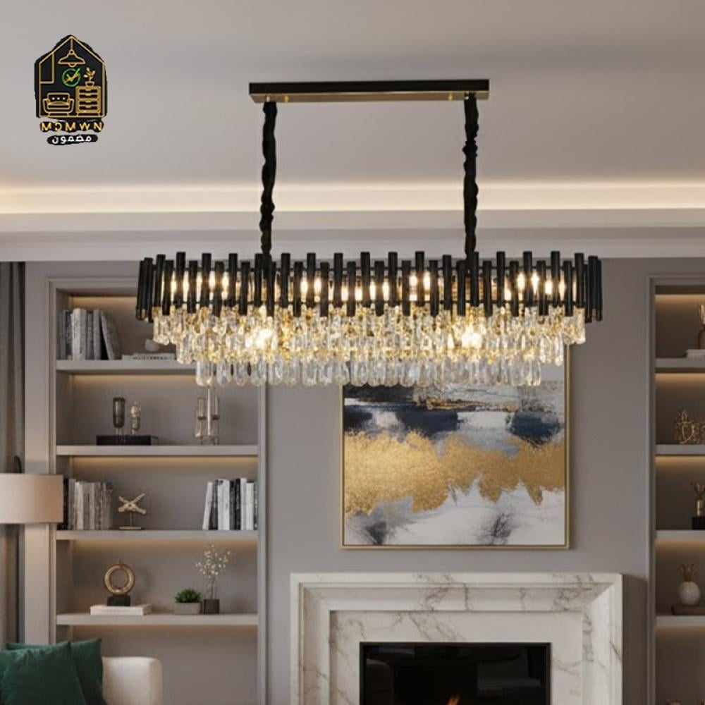 - الكريستالات مرتبة بشكل هندسي يوزع الإضاءة بشكل ساحر ودافي، ومقاساتها متوفرة تبدأ من الأبليك إلى النجفات الكبيرة عشان تناسب مجلسك أو صالتك الرئيسية. 💛🖤