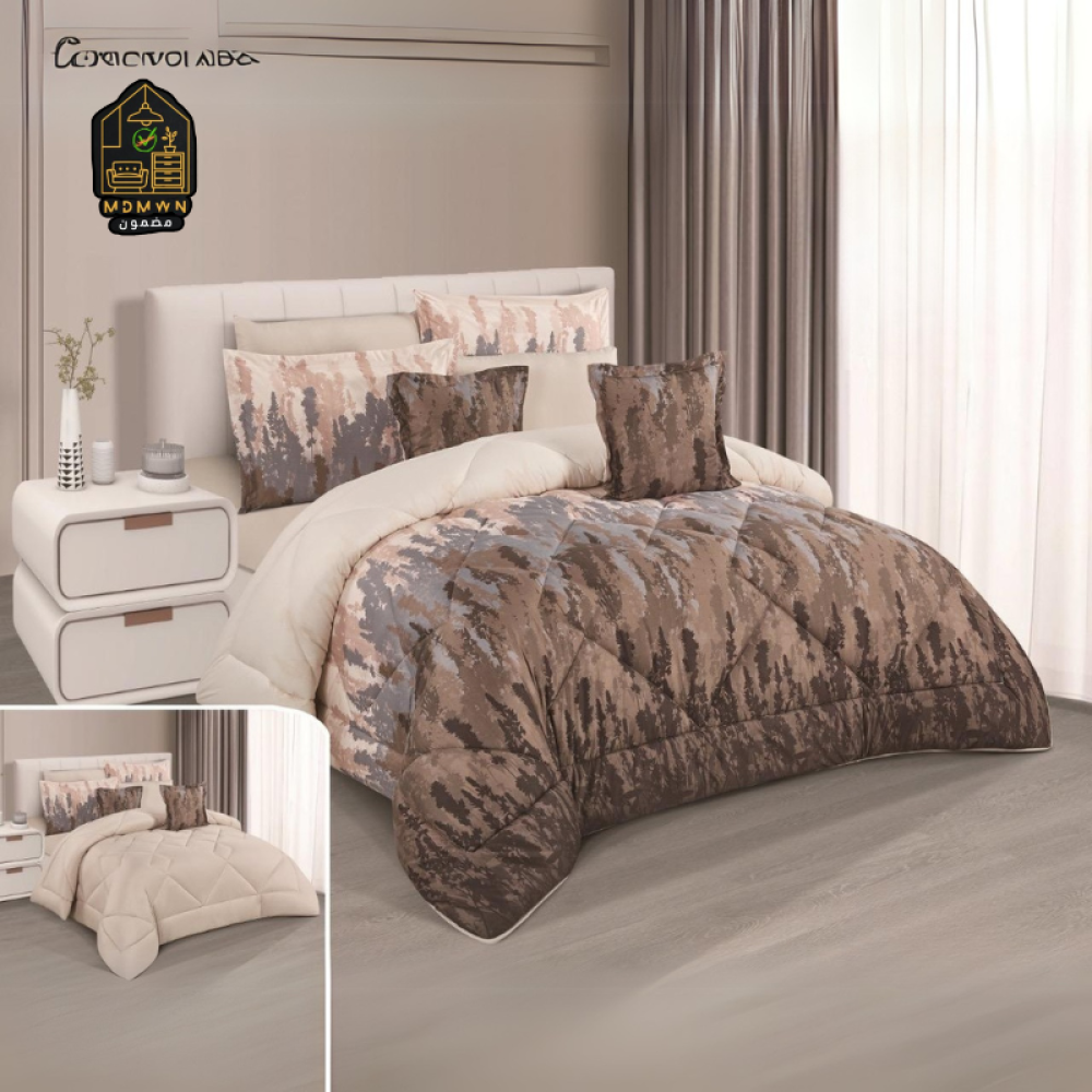Add a touch of elegance and modernity to your room with this 8-piece comforter set! 🛏️✨ The stunning abstract patterns in brown and neutral colors give you a unique look and add a calm atmosphere to your room. It provides you with complete comfort and support during sleep, and includes the right pillows for the ultimate relaxation experience. Perfect for any season! 🌙💤