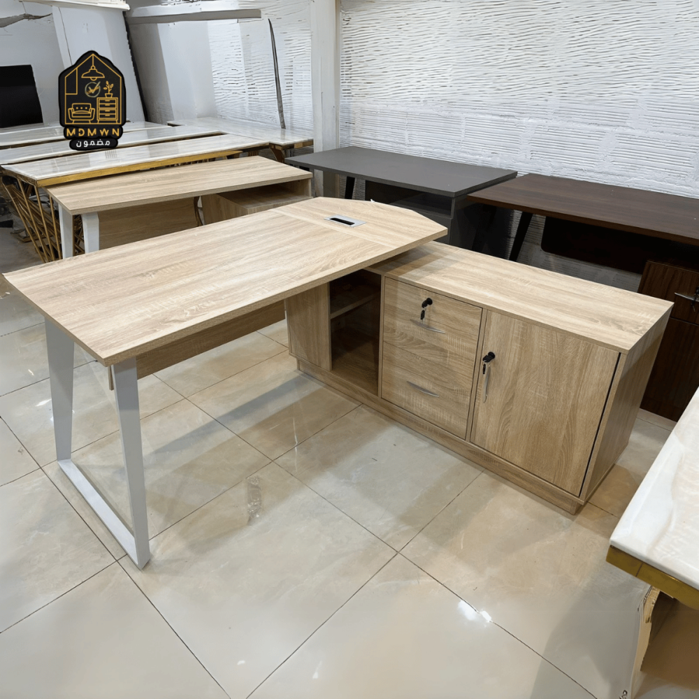 Give your office a professional touch and modern elegance with this light wood side office desk, featuring a smart, functional design. It combines ample workspace with ideal organization for papers and supplies, making it the perfect choice for offices, businesses, and even homes.