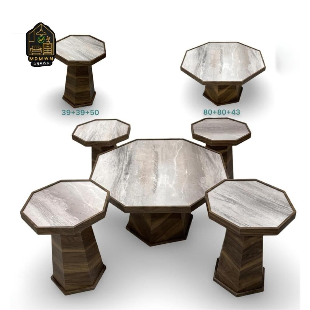 A luxurious set with an elegant octagonal design that combines luxurious gray marble with a warm wooden base ✨