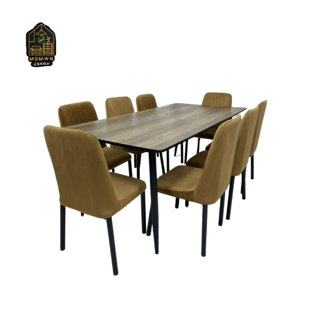 Sturdy table with 8 chairs padded with soft and comfortable upholstery for long sitting 🛋️