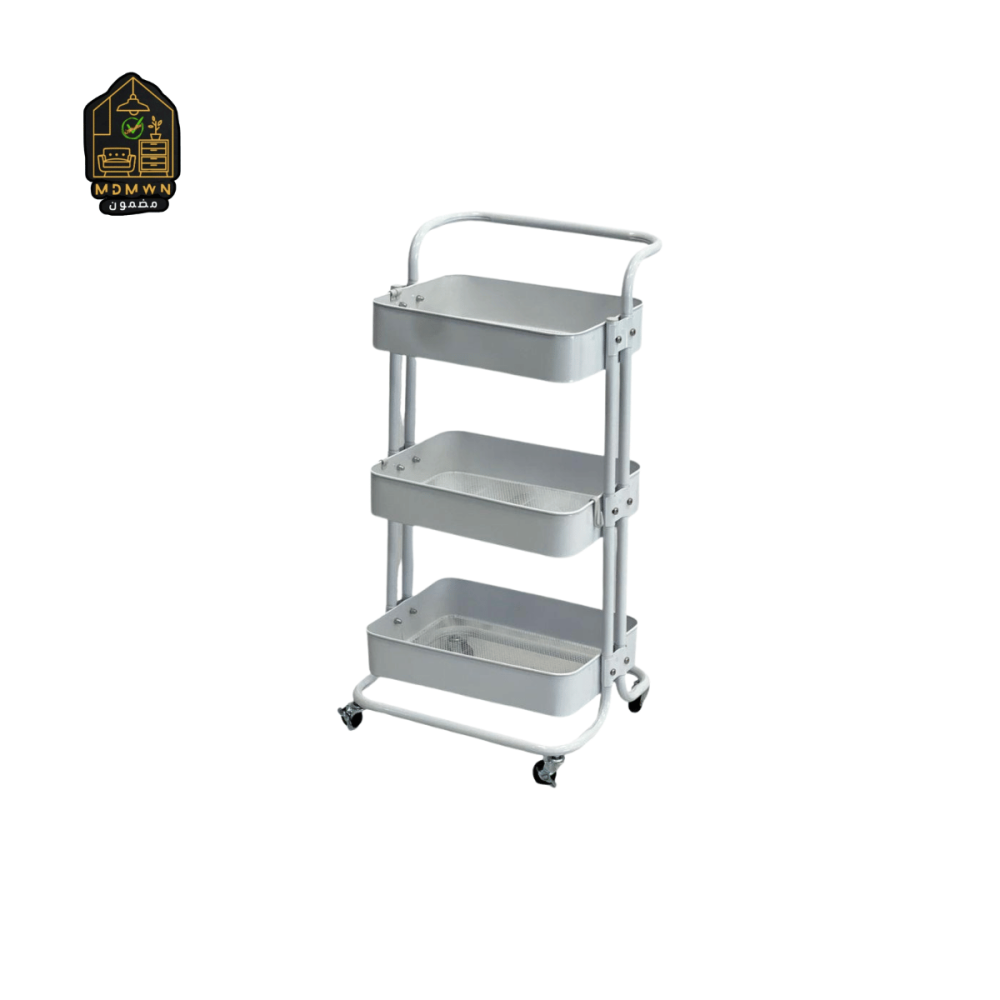 A movable iron shelf table, ideal for organizing your belongings with ease and flexibility. It features a modern and simple design, with three shelves providing ample storage space. Thanks to its wheels, you can move it from one place to another with ease. It's the perfect choice for any space that needs more organization and storage. 🖤🔧