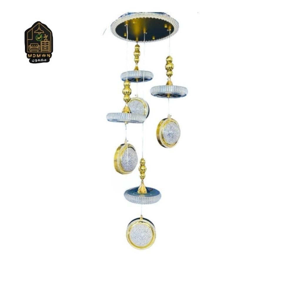 Multi-layered design of golden crystal, each piece reflects light and elegance like a treasure in the palace.