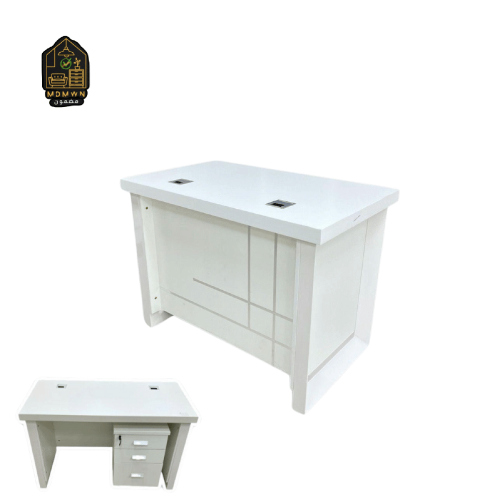 Add a touch of elegance and simplicity to your workspace with this executive desk crafted in pure white with a distinctive soft touch on the front. The desk features a practical, all-in-one design with three side drawers closed with silver handles, providing optimal storage space for files and papers. The spacious surface features two built-in cable management slots for professional cord organization. Its design combines beauty and functionality, making it ideal for offices, clinics, or study rooms.