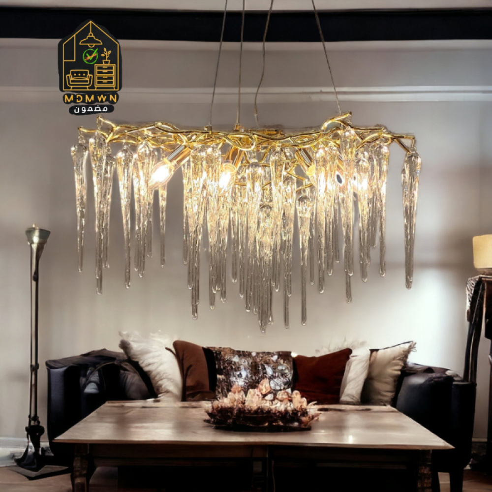 Guaranteed - MDMWNA modern, elegant, and sophisticated glass chandelier that adds beauty and luxury to the place. Available in 80cm and 60cm diameters. Height control 1m Contains 8 E14 LED bulbs Bulbs are not included with the product.