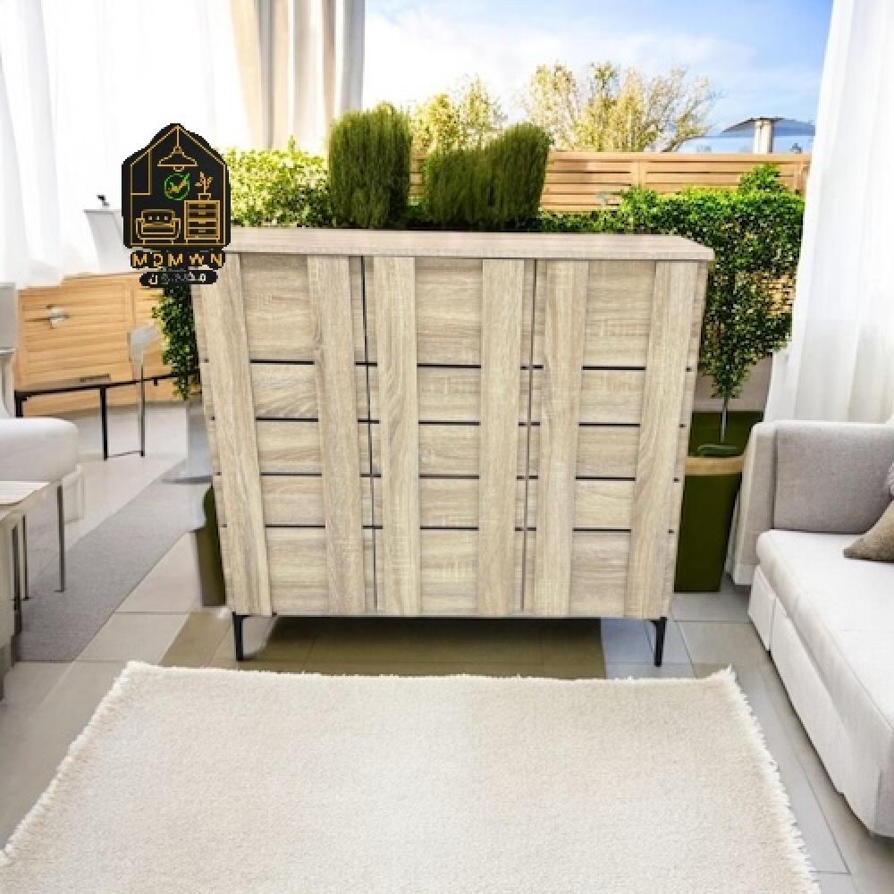 Add a touch of practical elegance to your space with this two-door wooden cabinet ! Combining modernity and simplicity, it fits in with a variety of decor styles. Its distinctive vertical panel design adds visual depth and striking elegance, while the sturdy iron legs provide high stability and easy cleaning underneath.