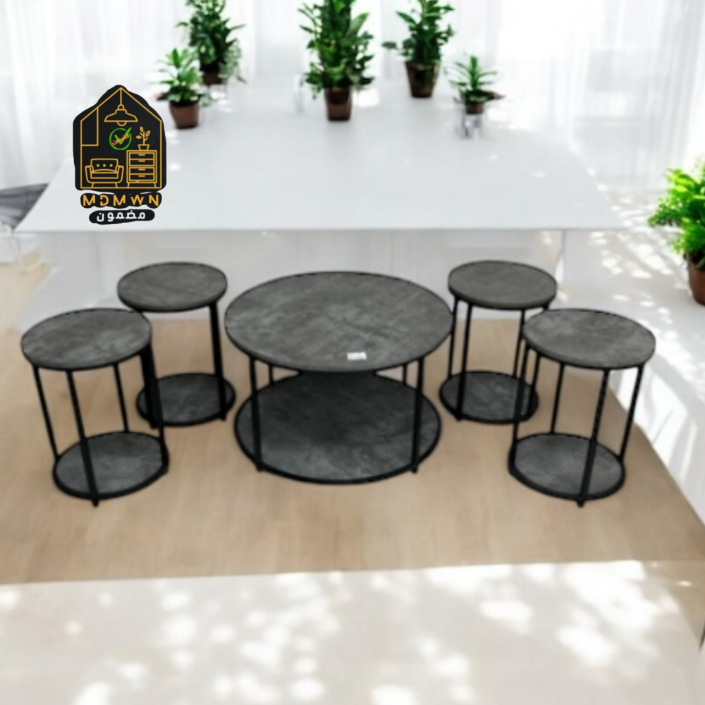 A modern and elegant coffee table and side chair set that adds a contemporary touch to your home or office. 🏡✨ The tables are made of durable wood with a strong metal frame and feature an elegant glass top for a luxurious feel. Perfect for sitting and relaxing with family or guests. The durable design provides storage space under the table to keep items organized. 📚🗂️ Suitable for all spaces thanks to its modern and practical design.