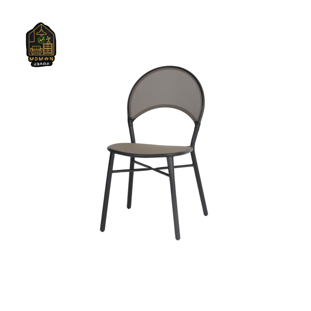 This chair features a semi-circular back design and a sturdy metal frame, adding an aesthetic touch to any indoor or outdoor space. Suitable for dining tables, cafes, or guest lounges.