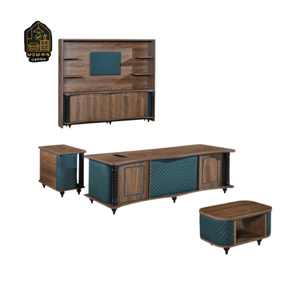 Create a stylish and organized workspace with this set consisting of a desk, a 5-door wardrobe, and a tea table. Modern design with distinctive details provides practical storage and ample space. 🌟🖥️