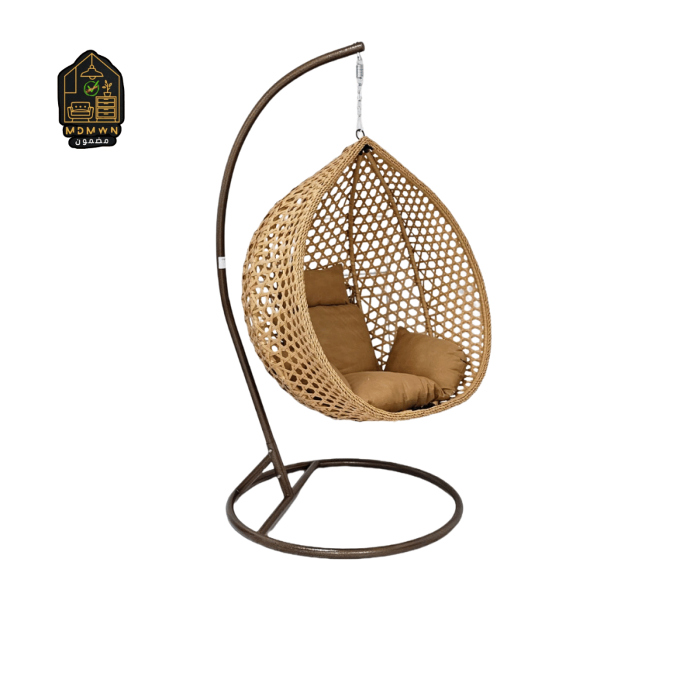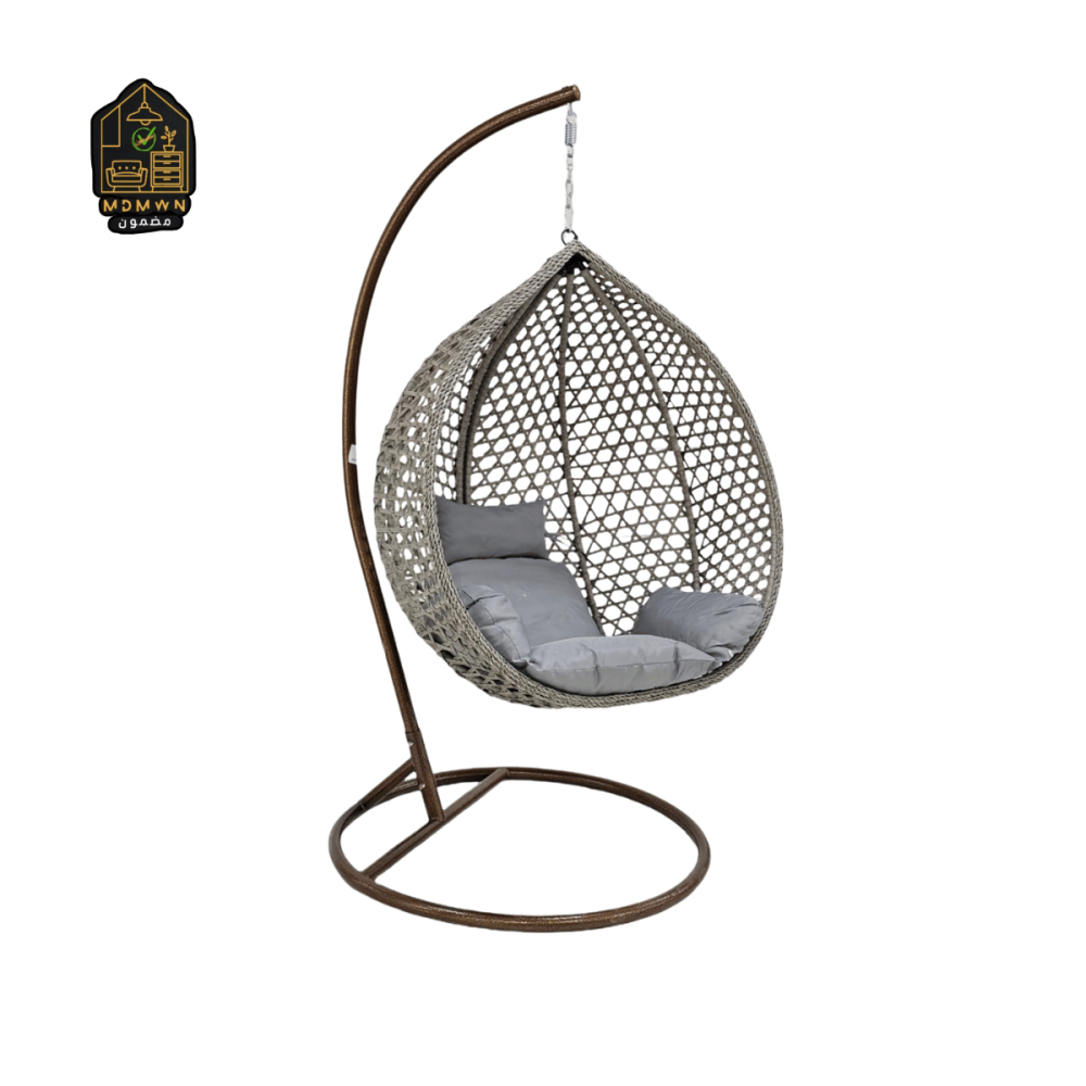 A stylishly designed hanging swing with a comfortable seat, suitable for outdoor seating or quiet indoor corners. Its mesh design and stable metal support add a touch of relaxation and comfort to your space.