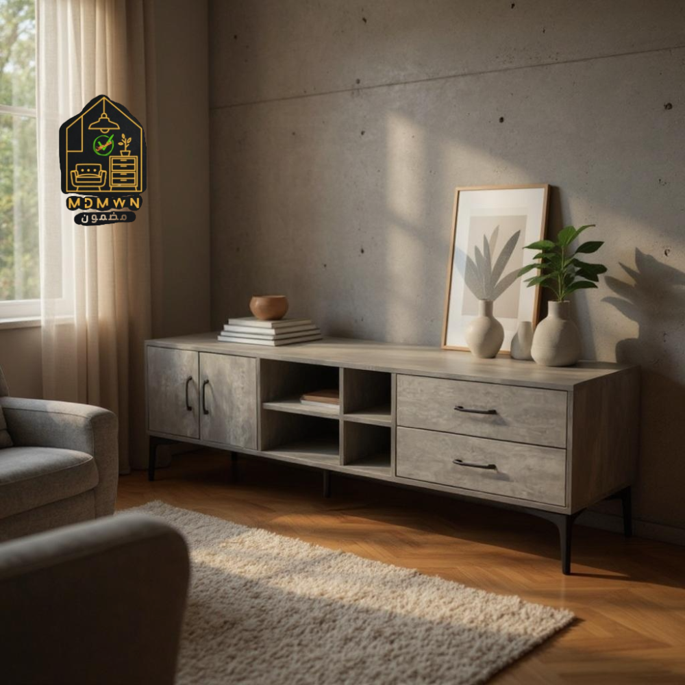 A distinctive TV unit that combines elegance and functionality. It is modernly designed with storage drawers equipped with mesh doors that add a touch of modernity to any space. It provides the perfect space for organizing electronic devices and blends beautifully with all living room decors.