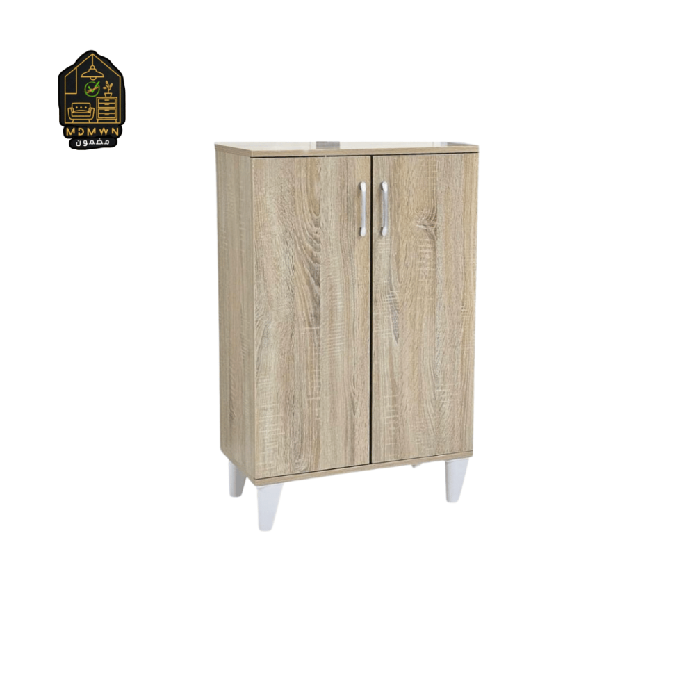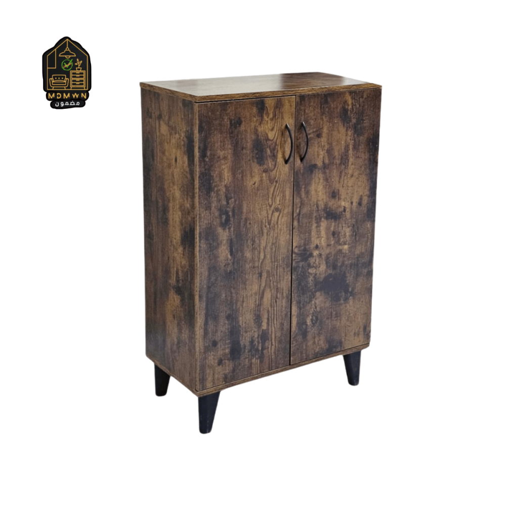 Experience superior space organization with this modern two-door wooden wardrobe, which combines elegance and functionality. It features a sturdy design with soft touches that give it a distinctive presence in living rooms, offices, or even entryways. Its solid construction and raised base provide stability and elegance, while the interior shelves provide versatile storage. Available in five attractive colors to suit various tastes and decors: striped black, marble gray, classic brown, rustic brown, and light wood.